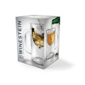 Dvojstenný priehľadny pohár s vonkajším dielom tvarovaným ako pivný polliter ale vnútorným ako pohár na víno.