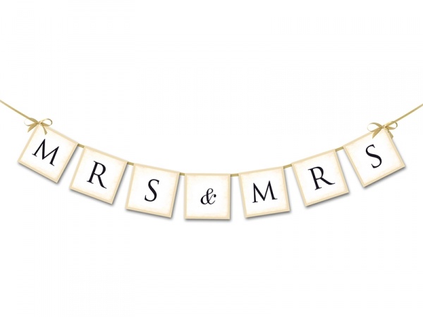 Papierová girlanda s nadpisom " MRS & MRS " je perfektnou dekoráciou svadobnej hály.