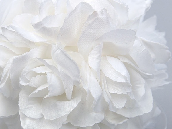 Ozdobná guľa z kvetín z bielej farby sú perfektnou dekoráciou svadobnej hály.