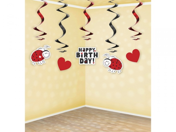 Červeno čierná visiaca dekorácia s roztomilou lienkou a srdiečkom.