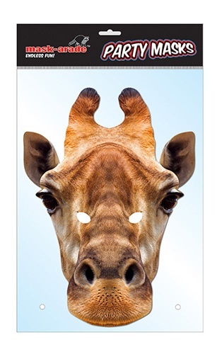 Veľká papierová maska na tvár v podobe zvieratka žirafy.