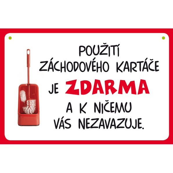 Vtipná ceduľka: Použitie záchodovej kefy je zadarmo a k ničomu vás nezaväzuje.