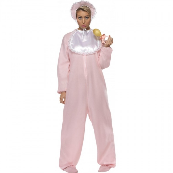 Kostým obsahuje svetlo-ružové dupačky, čepiec a podbradník.