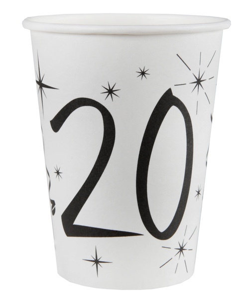 Sada 10-tich kusov narodeninových papierových pohárikov s číslom 20.