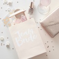 Sada 5 kusov papierových párty taštičiek vo svetlo ružovej farbe s bielym nápisom Team Bride.