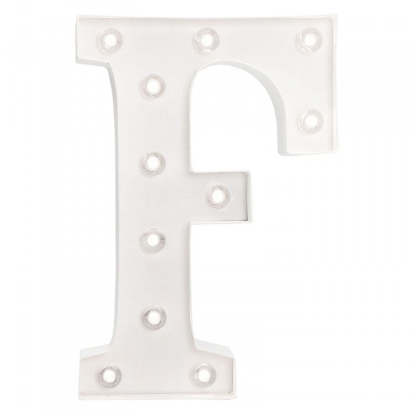 Originálna dekorácia či darček v podobe LED svietiaceho písmena F, ktorý dodáva slávnostný osobitý štýl na svadbách, večierkoch a oslavách, či ako svetielko v detskej izbe. Napájanie je na dve AAA batérie, ktoré nie sú súčasťou balenia.
