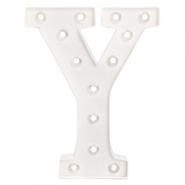 Svietiace písmeno Y v bielej farbe, s LED žiarovkami so spínačom a chráničom žiaroviek (bez batérií - potrebné sú 2x AAA batérie).